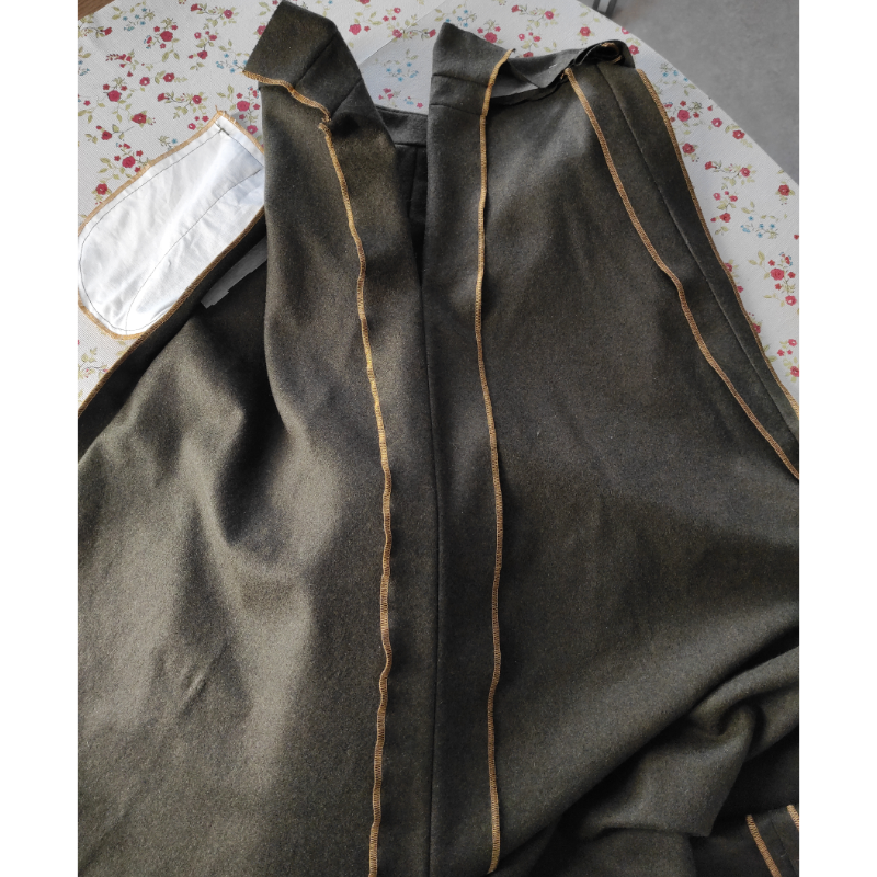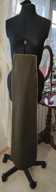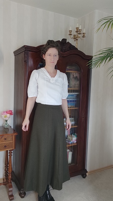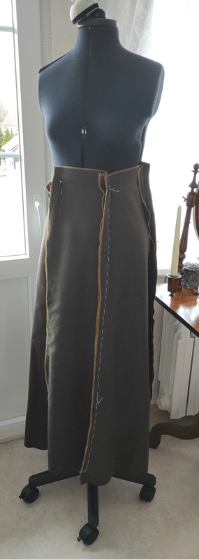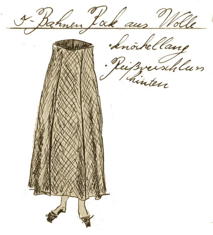 Das Schnittmuster hab ich aus meinem Buch „Das Buch der Haus-Schneiderei“, welches um 1914 herum erschienen ist. Damals wurde der Rock an der Seite mit Haken und Ösen verschlossen.
