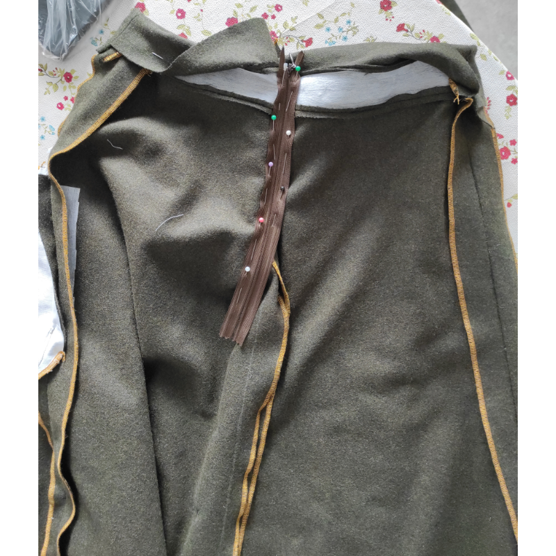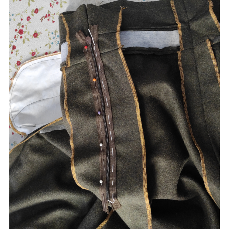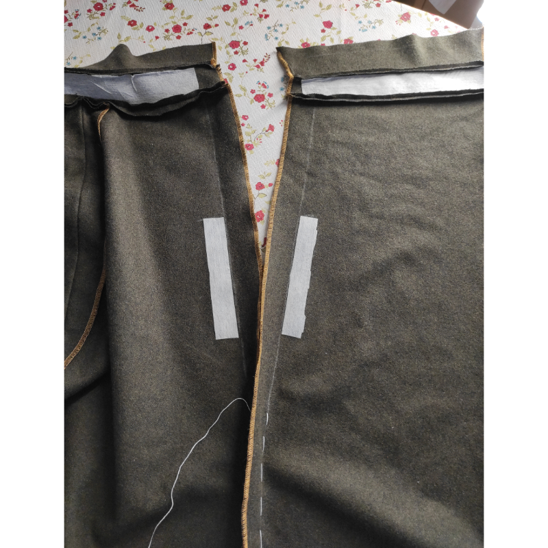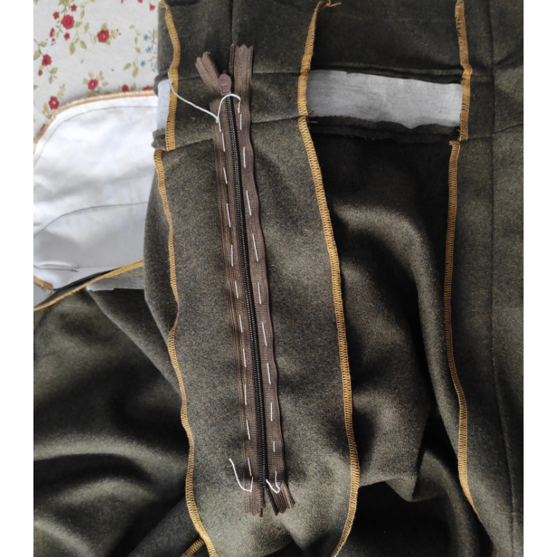 Die Naht, wo dann der Reißverschluss eingenäht wird, wird nur mit Heftfaden zusammen geheftet.
