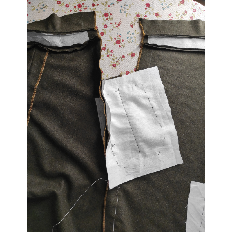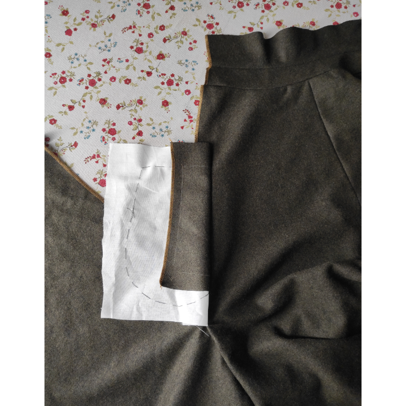 Wichtig ist, dass man den Taschenbeutel aus einem Stoff seiner Wahl zuschneidet und einen Beleg, der aus dem gleichen Stoff besteht, wie der Rock.