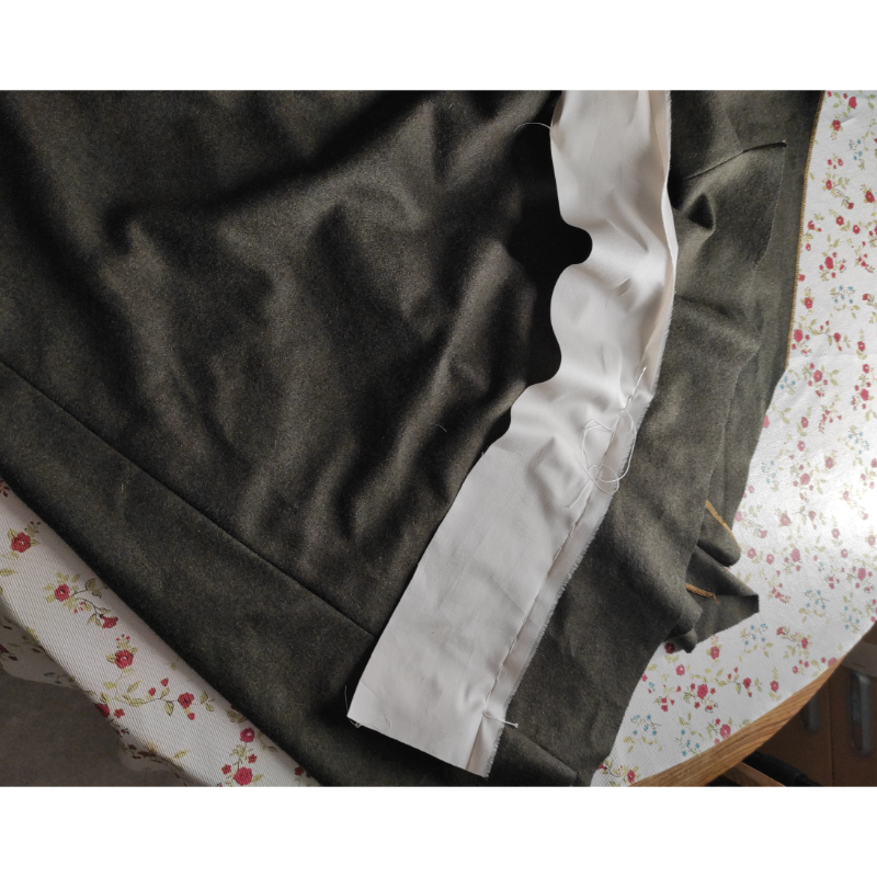 Die seitliche Rockbahn ist am oberen Rand hinten 2 cm und und unten 6 cm höher. Das ergibt eine schöne Rundung und sieht besser aus, als wenn es oben und unten gerade und rechtwinklig ist.
