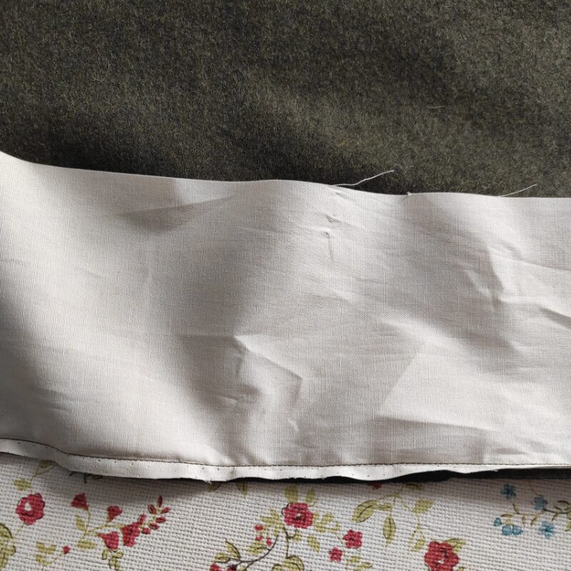 Dann hab ich für den Bund eine Schablone erstellt. Denn der Bund ist ja leicht rund bzw. gewölbt. Er muss sich quasi genau der Rundung des Rockbundes anpassen.