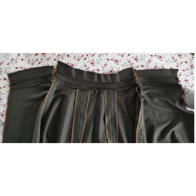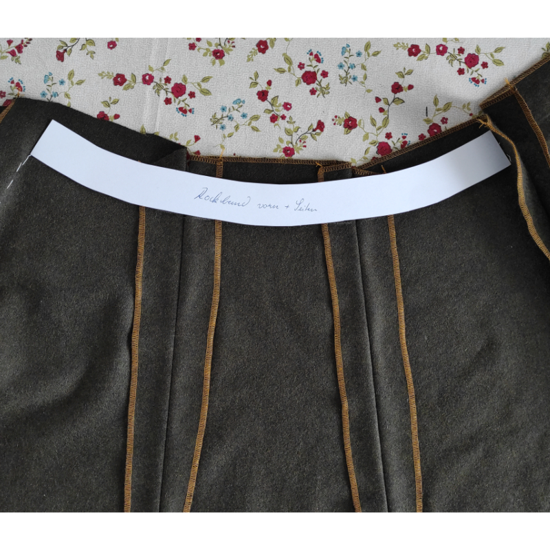 Jetzt wird der Rockbund (die 3 Teile) an den Rock genäht.