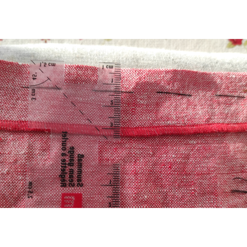 Mittels des Saummaßes kann man ideal die Breite der Falte abmessen. In meinem Fall ist die Biese 0,3 cm breit.