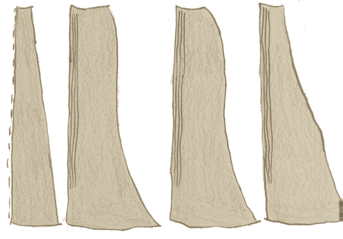 Diesen Vorgang wiederholt man jetzt mit allen Biesen auf allen Rockbahnen. Die einzige Bahn, wo ich keine Biesen genäht hab, ist die vorderste.
