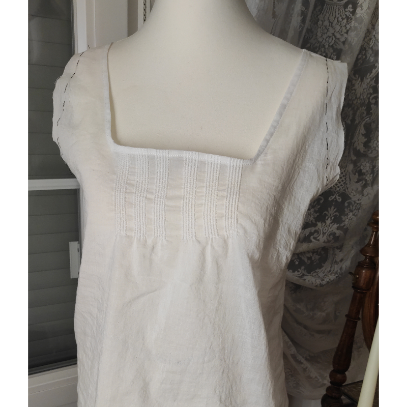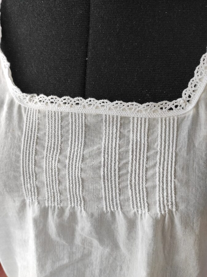 Und da die Vögel bereits mit einer Emsigkeit zwitschern, als stünde der Frühling bereits um die Ecke, hab mich an die Arbeit gemacht und schon einmal ein historisches Unterhemd mit schmalen Biesen genäht.