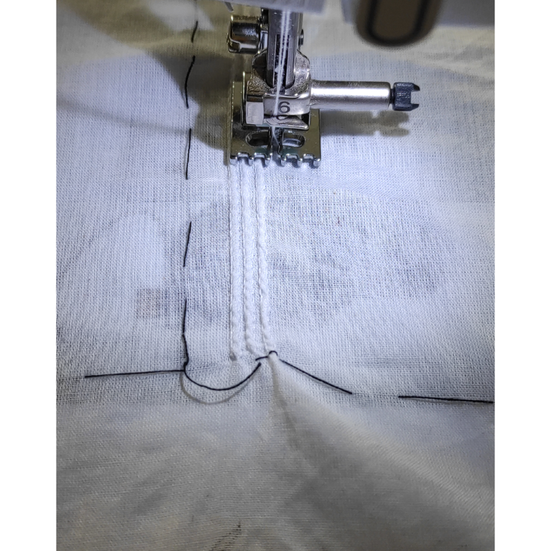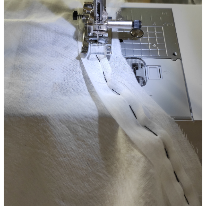 Jetzt wird es spannend und die ersten Biesen können genäht werden. Ich hab dazu einen speziellen Biesen-Nähfuß genommen.