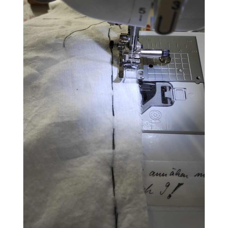 Da ich mir immer unsicher bin, wieviel Weite man denn nun zugeben muss, wenn das Vorderteil Biesen hat, hab ich einfach ein Stoffrest genommen und dort die Hälfte der Biesen genäht, wie sie später am Unterhemd sein würden.