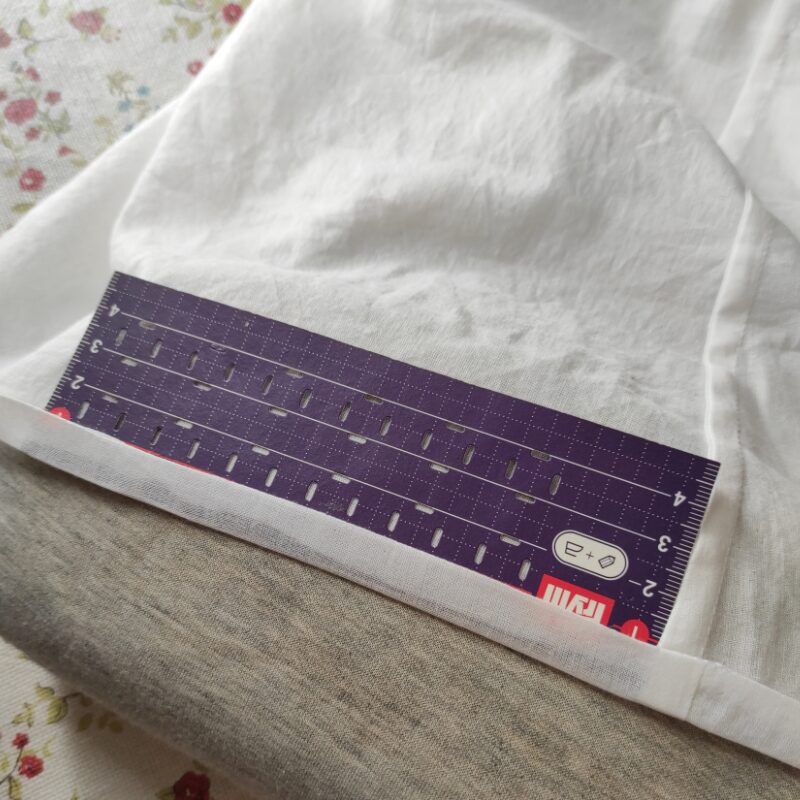 Man kann dann ganz leicht den Saum an der Hilfsnaht umbügeln. Anschließend ein zweites Mal umbügeln und festnähen.